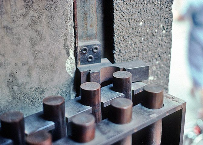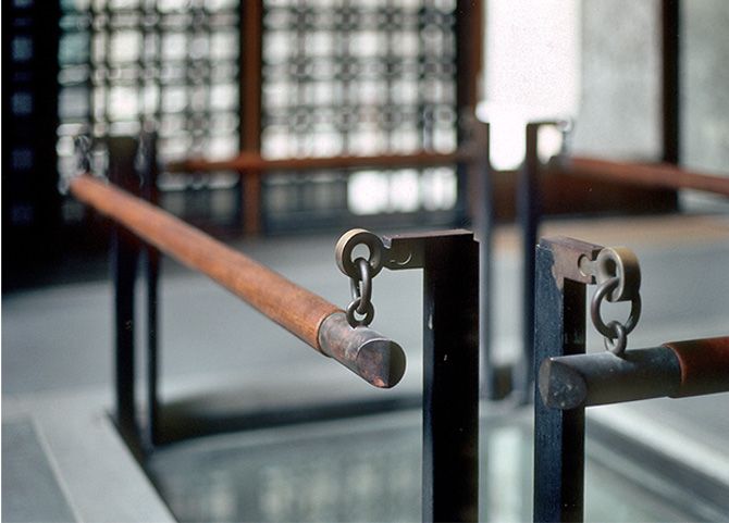One example of his work was a renovation of a medieval barracks, which was turned into a small museum. Wherever his work stopped and the existing structure started, or vice versa, he celebrated that edge with a flourish. You’d have this brick building with walls that were two feet thick, and then he’d put in a piece of bronze and start a hand-thrown plaster partition. He was able to forge, literally, iron railings for that job and insert bronze pieces into them. Where they touched, he made a keyhole, and they fit together.